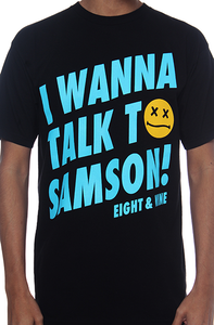 Inspired by one of the greatest. Sir-Smoke-Alot: Bitch! You know what I want! Hahahahaha! I wanna talk to Samson! Fly me to the moon like that bitch Alice Kramden! 'Cause it's hard being black and gifted! Sometimes I wanna throw it all down and get lifted!" Another classic shirt to match your Gamma Blue 11's. "I Wanna Talk To Samson!" black on black w/ gamma blue and varsity maize. S-4X while supplies last.