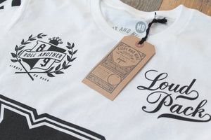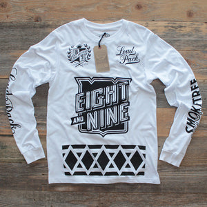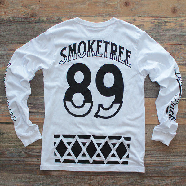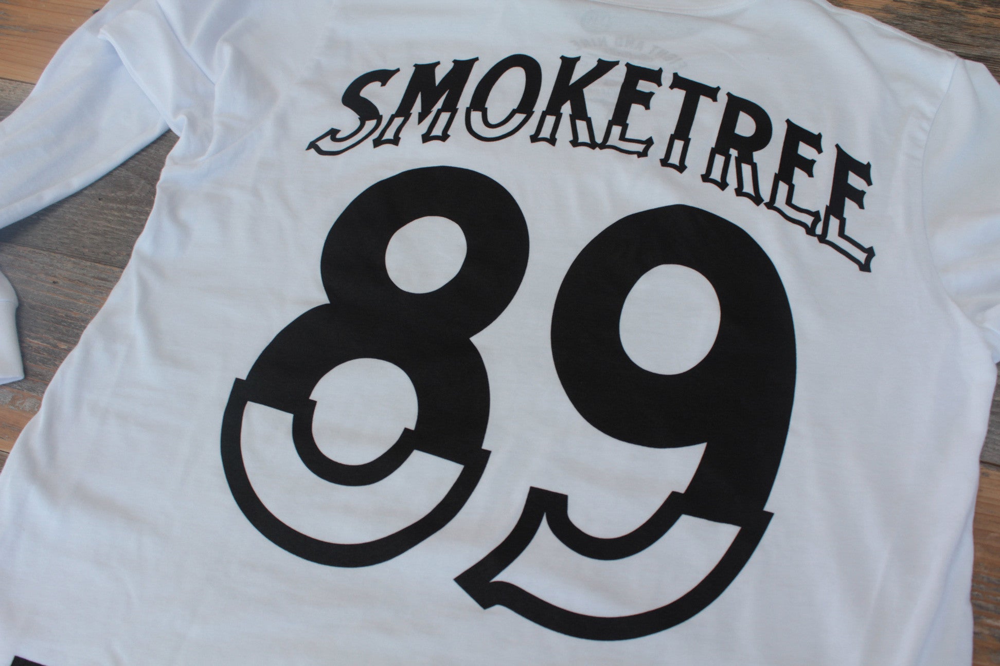 Fall '14 long sleeve SmokeTree hockey inspired Jersey Tee. Check the details, Roll Another crest, Loud Pack, SmokeTree name plate. You shop 8&9 for a reason. Super classic white/black color scheme. #8and9llife Get this one while you can. Certainly won't last long.