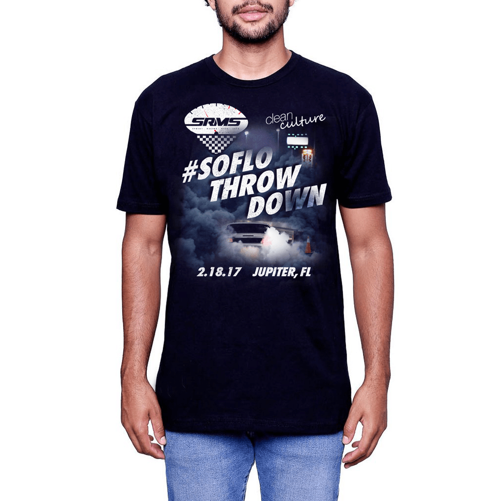 The official SRMS x Clean Culture So Flo Throw Down T Shirt. Commemorating the event held at Palm Beach International Raceway the shirt is one of a kind. Beautiful print. premium black ring spun cotton, 30 singles tee, a modern fashion fit, runs true to size. Built to last, soft spun for daily use. Get your shirt. S-3X.