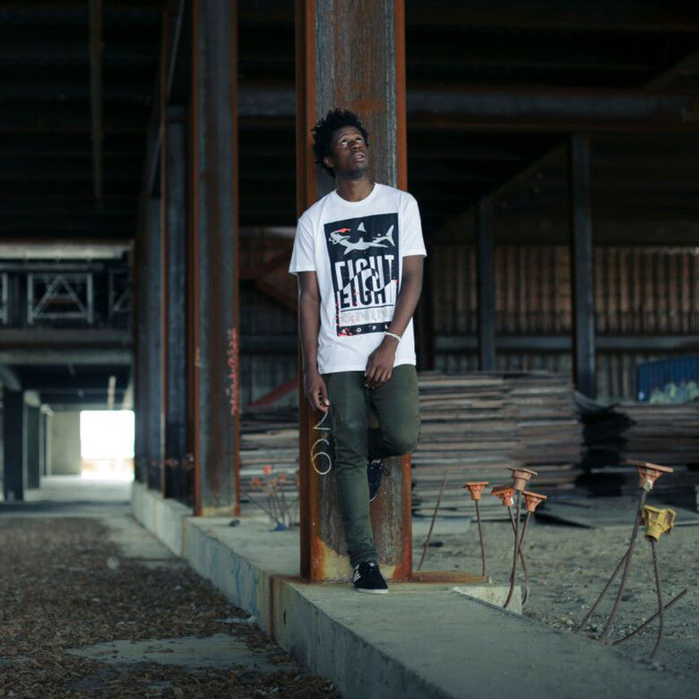 New South Beach inspirations with the smoking shark. So Flo T Shirt made from premium fabric with the infrared and cement color scheme. Get yours while they last.