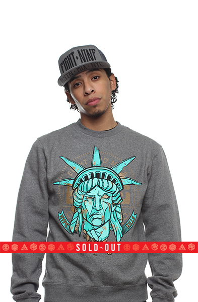 Hype Kills design collaboration with Freehand Profit. This is the perfect shirt to match the Nike Air Hyperposite Statue Of Liberty. Gunmetal heather crewneck sweatshirt, midweight w/ Crystal Mint/Metallic Copper print. Available in s-3X while supplies last. Guaranteed direct match.