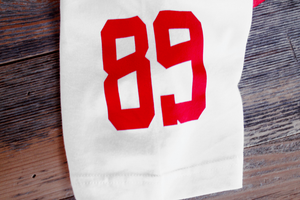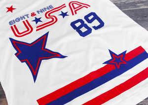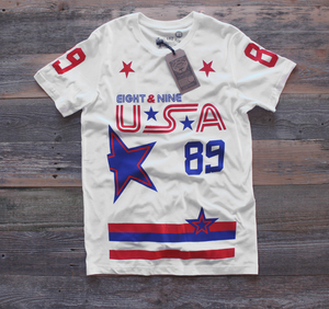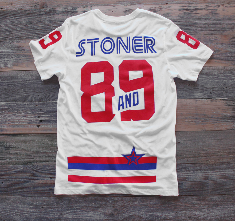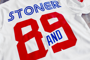 USA inspired Stoner hockey jersey tee. Short sleeve, fire red. A tribute to the greatest game on earth Stoner Hockey Jersey. Classic USA color scheme. Giant back #Stoner print and number 89. #8and9life Get this one while you can. S-4X