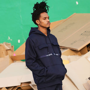 Premium hoodie with Navy straps and white accent embroidery. Inspired by the early 2000's this Strapped Up Utility hoodie gets the job done.