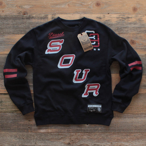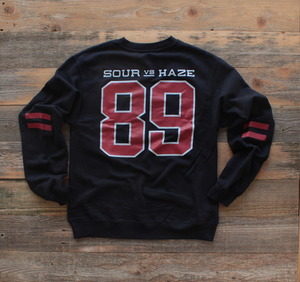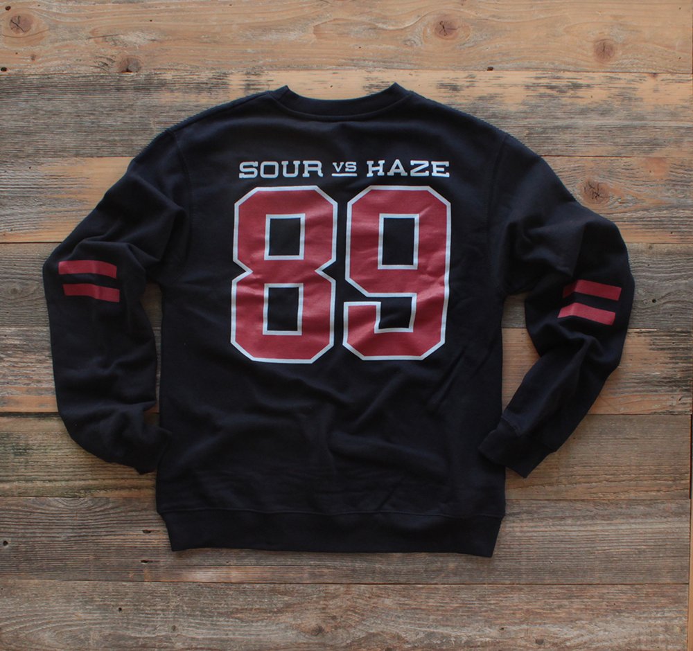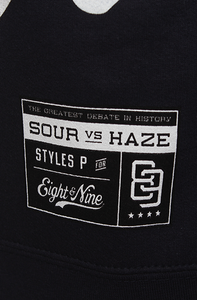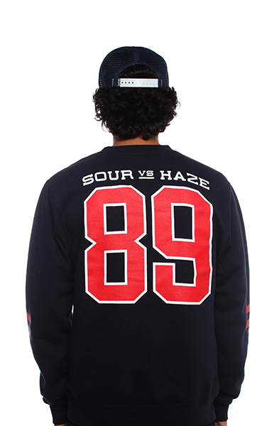 Sour vs Haze collaboration with Styles P and Jadakiss will settle the greatest debate. Inspired by New York Rangers jerseys we took a home and away approach to the Sour vs Haze Jersey Sweatshirt. Styles P proponent of Sour set up this classic navy/red jersey. Giant "89" numbers capped by a Sour vs Haze name plate. Get this one while you can. Certainly won't last long. Check the details. Highest quality garment for two of the greatest.