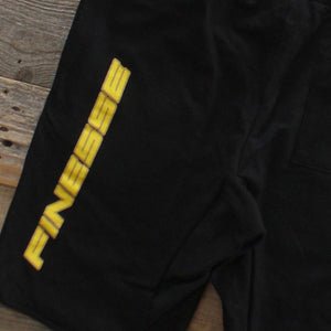 Finesse baby, 90's BMX inspirations. Black and bright pink "Team Finesse" shorts for Summer '15. Jumbo prints, multiple hits. Super luxe 100% cotton french terry shorts made in the USA. Modern tailored fit, cut off styling w/ raw edge. #8and9life