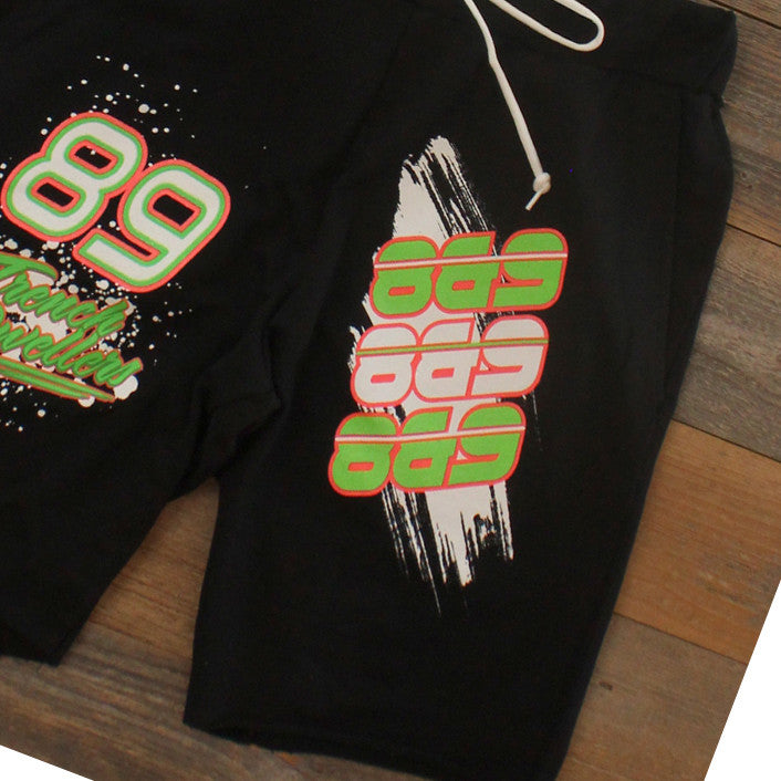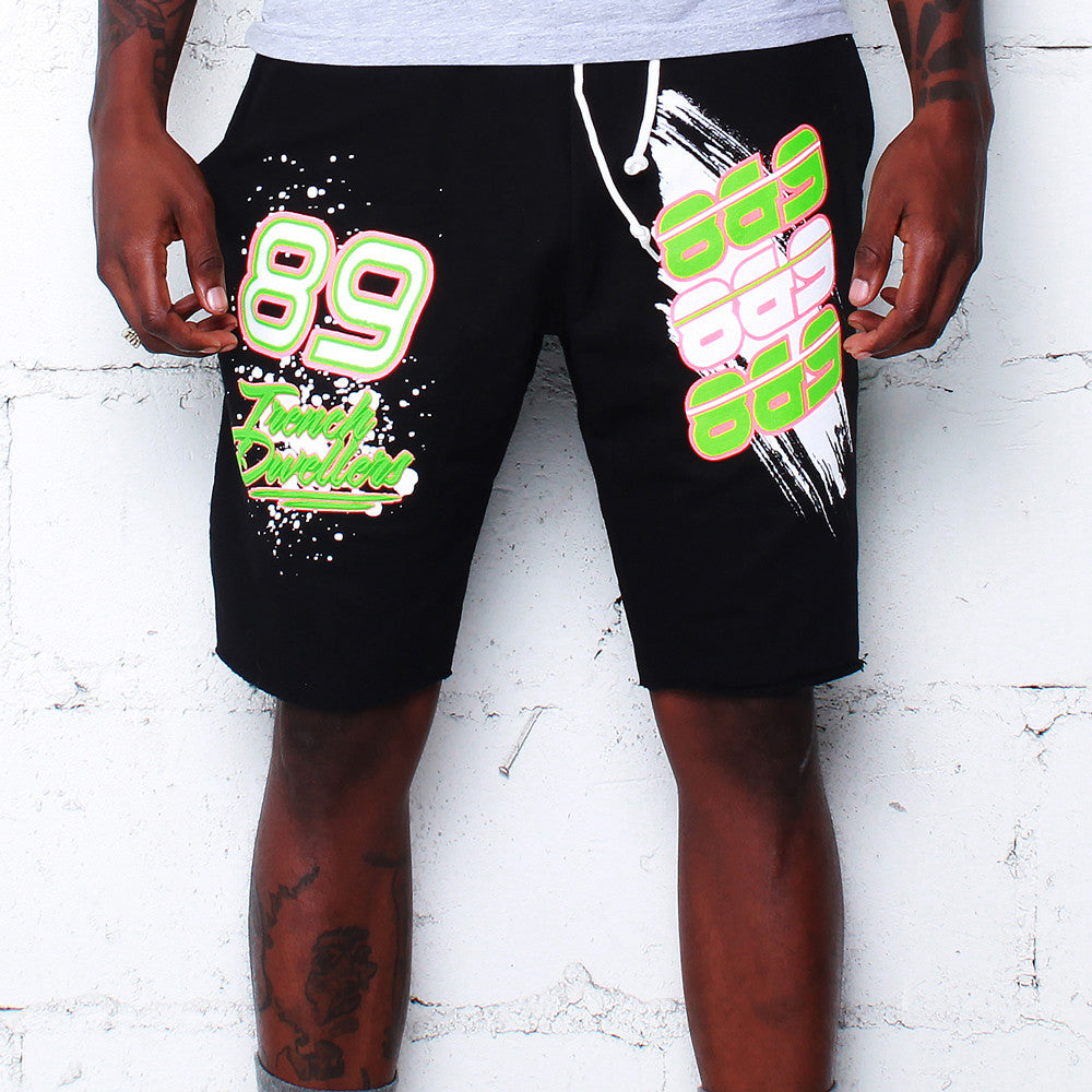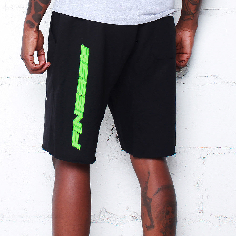 Finesse baby, 90's BMX inspirations. "Team Finesse" shorts to match Jordan Poison Green 5s. Jumbo prints, multiple hits. Super luxe 100% cotton french terry shorts made in the USA. Modern tailored fit, cut off styling w/ raw edge. #8and9life
