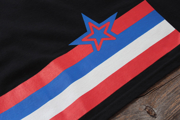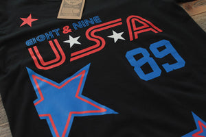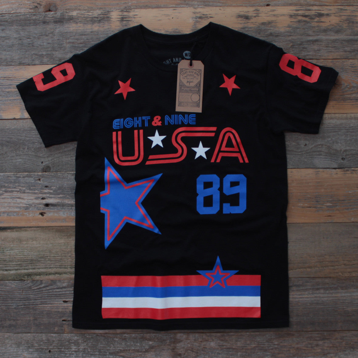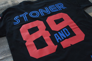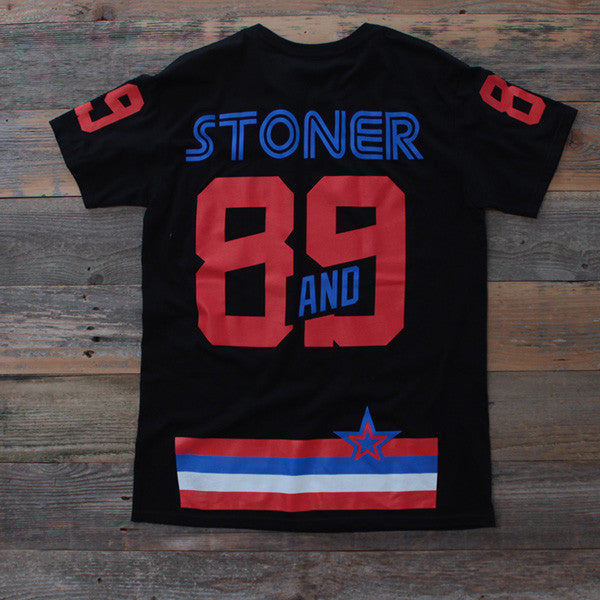 USA inspired Stoner hockey jersey tee. Short sleeve, black/royal and red. A tribute to the greatest game on earth Stoner Hockey Jersey. Classic USA color scheme. Giant back #Stoner print and number 89. #8and9life Get this one while you can. S-4X