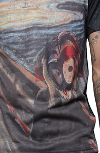 Part 2 of our Masterpiece Collection The Scream is an homage to expressionist artist Edvard Munch. This time we've taken the piece out of it's frame with an full front sublimation. Contrast neck and sleeves accent the art. 8&9 = the infinite perfection of ideas. All Masterpiece Collection tees are limited release and will not restock.