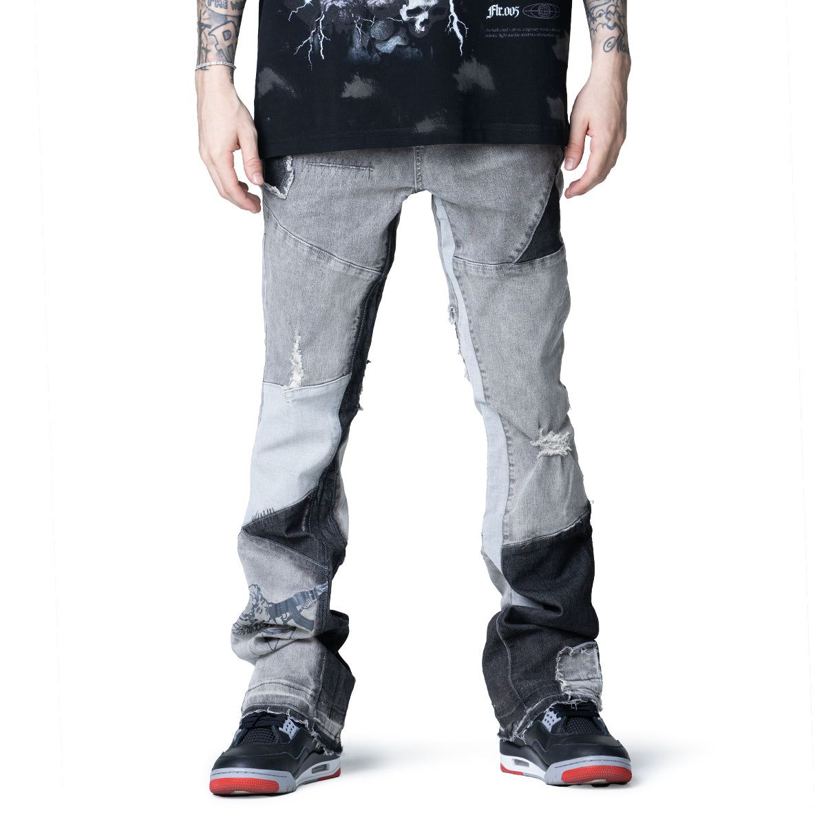 Thrash Stacked pants are made of premium stretch denim. They feature patchwork details and a slightly flared leg. Available in 3 colors. Pair these up with our tees for the perfect fit.