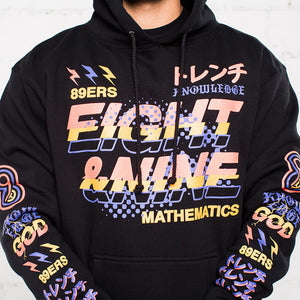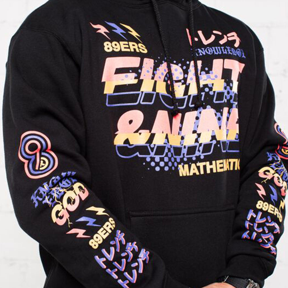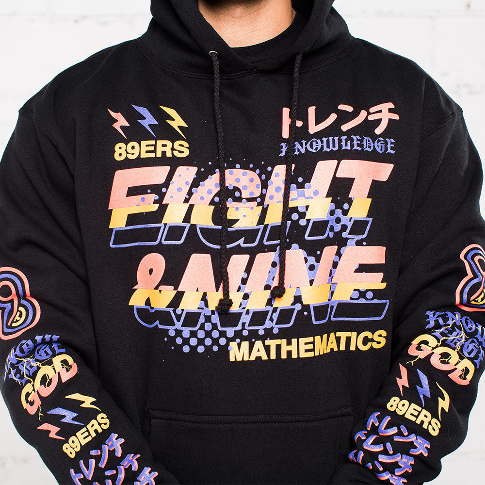 Jordan 8 Three Peat Hooded Sweatshirt. Knowledge graphic, premium black heavyweight hoodie. Perfect hoody to match Jordan 8 Three Peat. Black with infrared and bright concord.