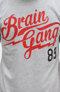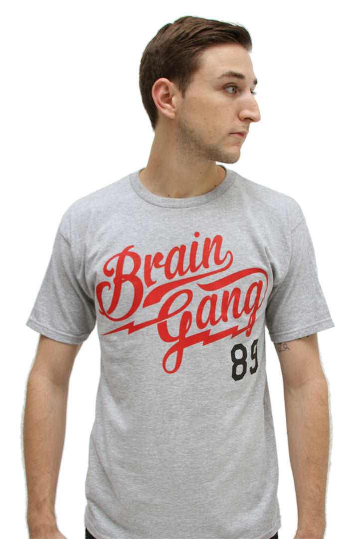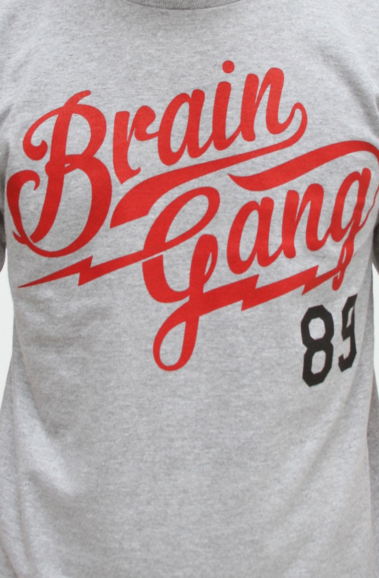 Our latest Brain Gang T Shirt. Inspired by the MLB. Brain Gang, 89. Heather/Toro Red. This is a perfect shirt to match the Jordan Toro Red 4 aka Raging Bull. Front and back print.