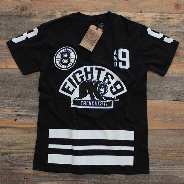 Spring 2014 Boston Bruins alternate jersey inspired piece. 8&9 life, forever in the trenches. Huge Squad 89 back print. Black and white. Definitely a classic in the making. Don't miss yours. #8and9life #SQUAD