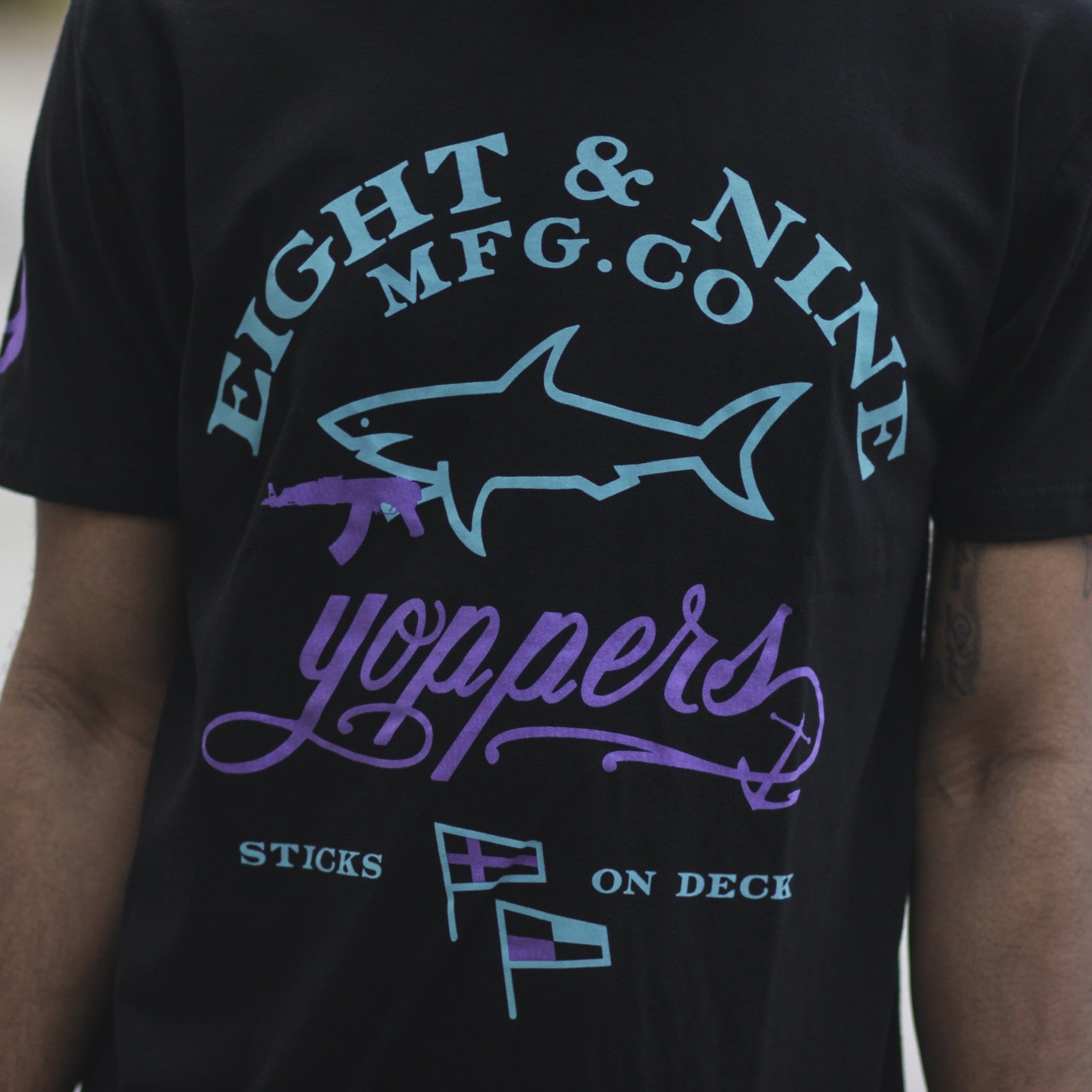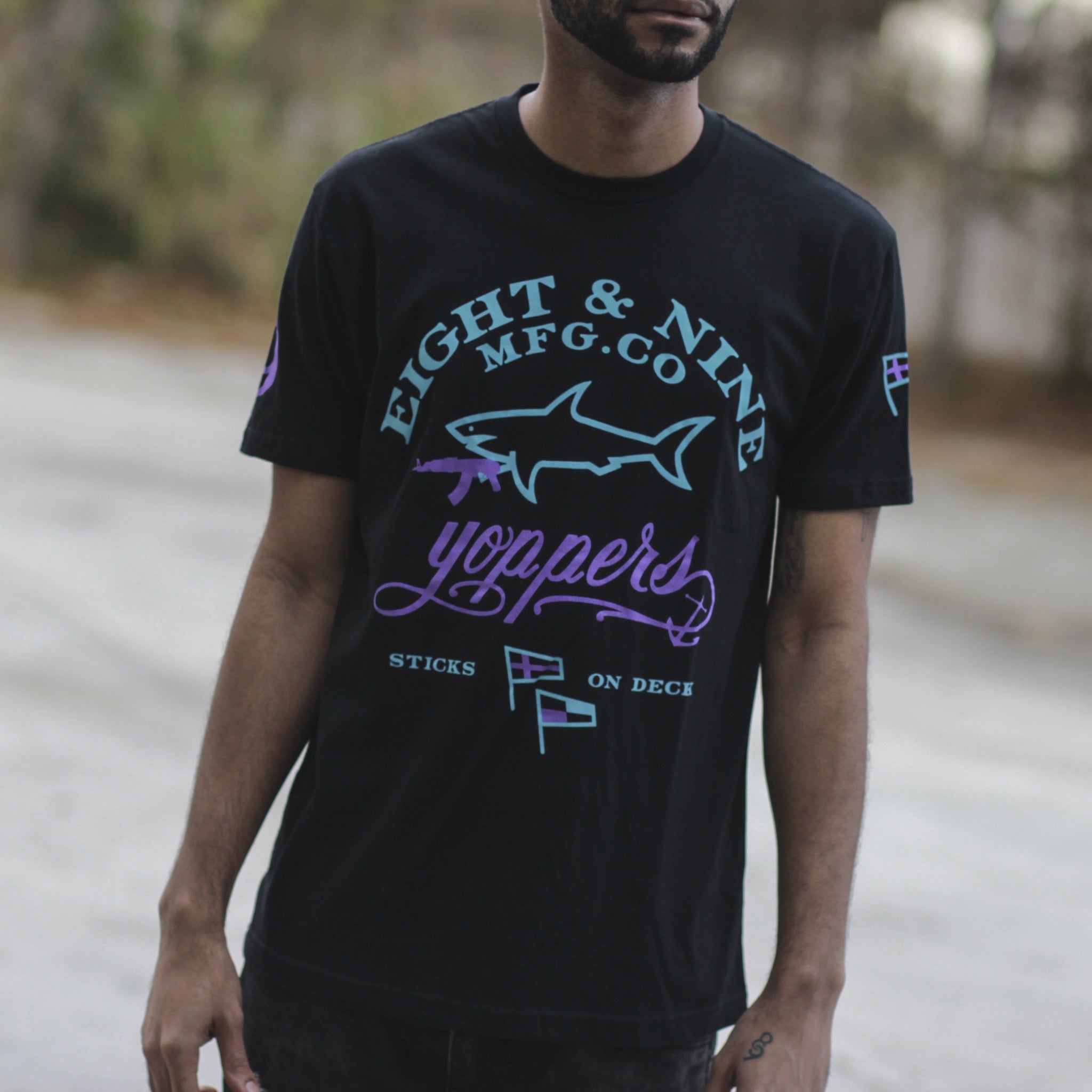 Jordan Aqua Shirt, premium cotton construction inspired by the Club. Yopper Club Aqua 8 Shirt in concord and aqua tone to match the Jordan Aqua 8s. Peep the details. Grab yours while they last.